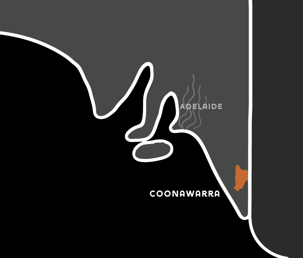 Coonawarra is a low, mainly flat region that sits along a series of ancient sea bed of limestone ridges that run from the ocean about 50km to the south. The famed terra rossa strip forms the region’s core; 2km wide and 27 km long, this permeable red clay coloured by iron oxide is only 50cm deep. The cool maritime climate here is dry but cloudy, with warm days in summer followed by cool nights, just what you need for a long ripening period, vibrant acidity and complexity in the grapes.
